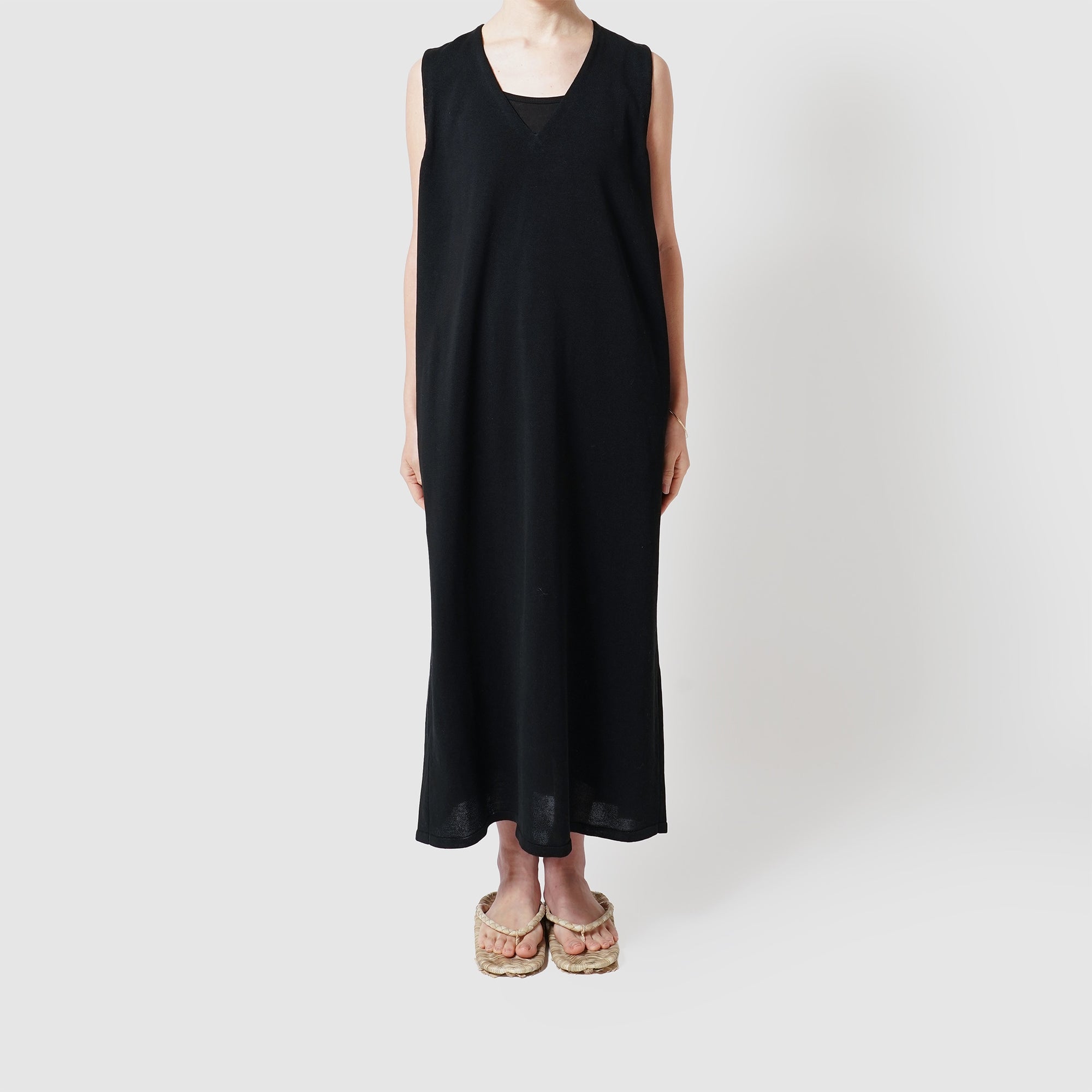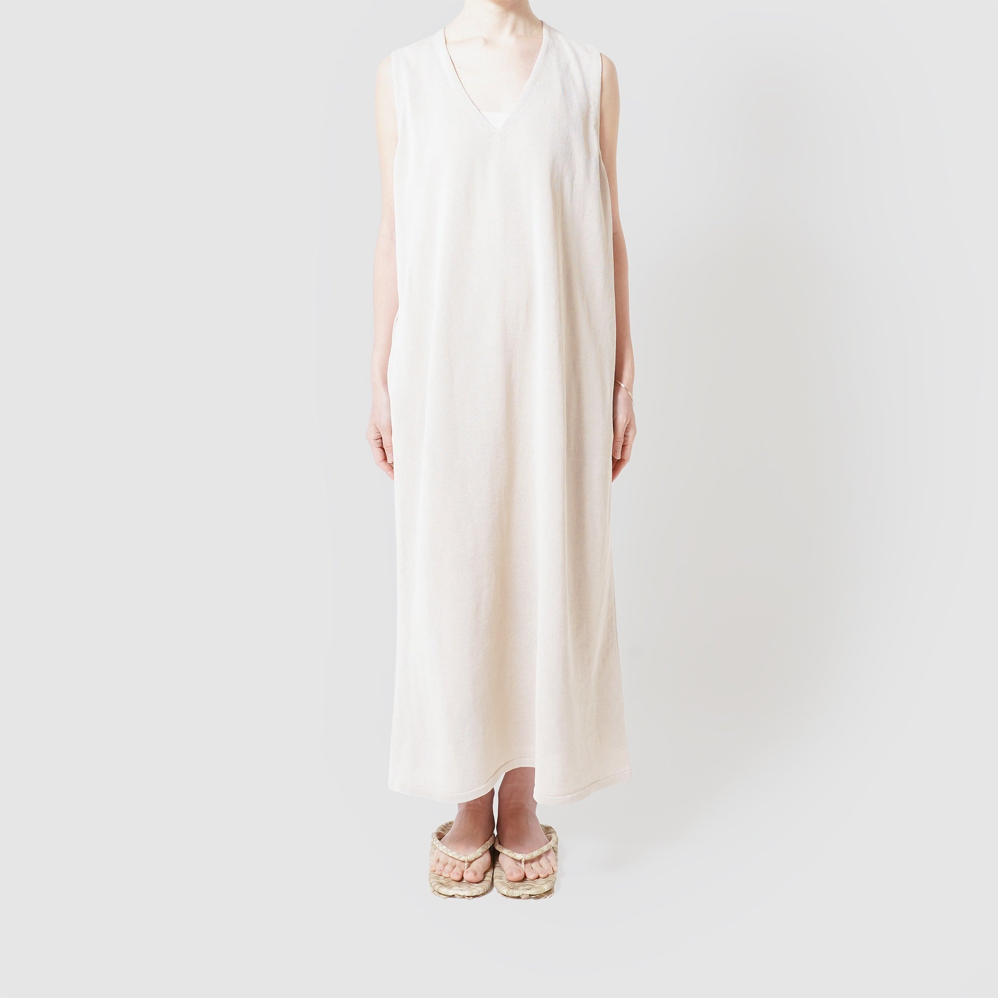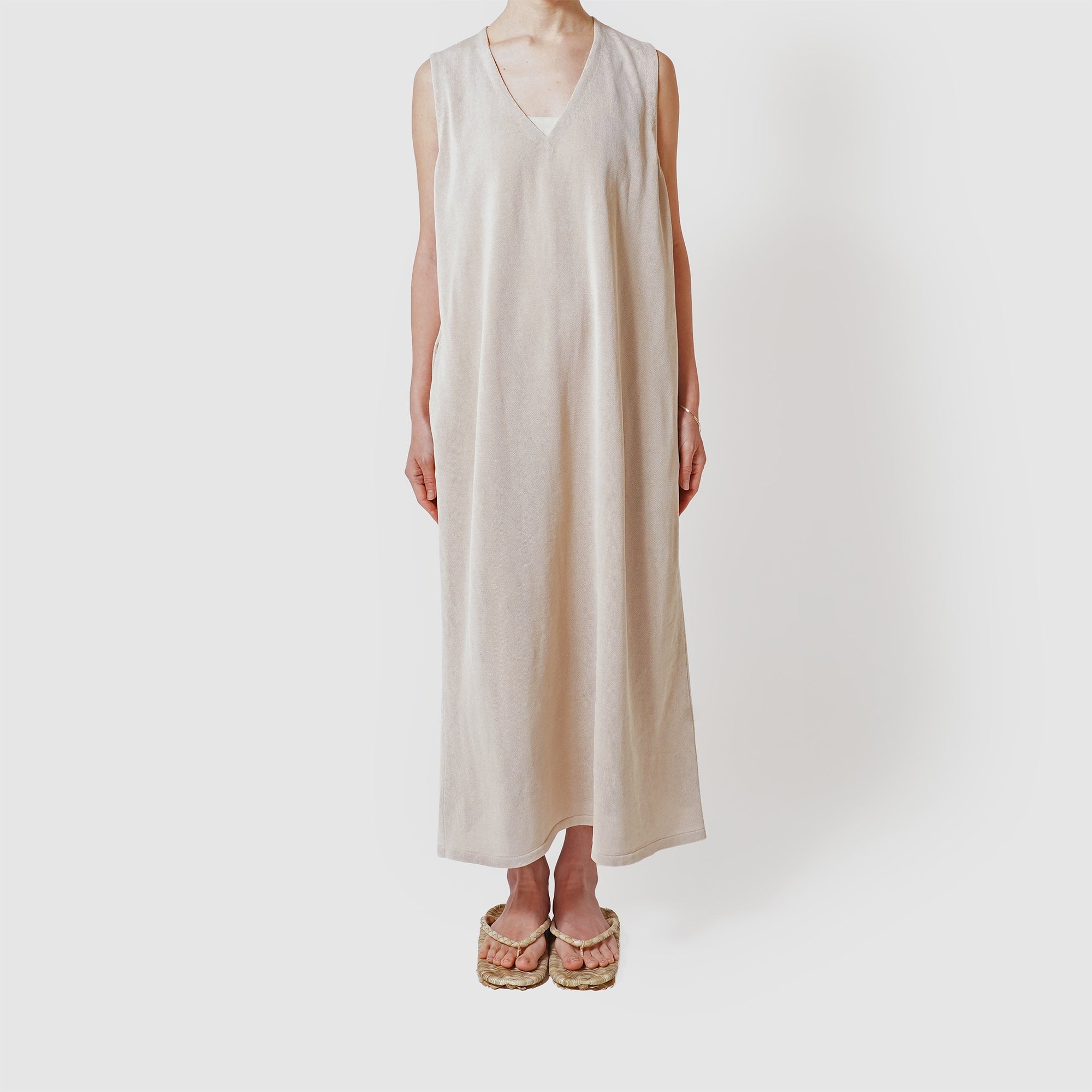 Cotton v-neck sleeveless one piece / Pre-order